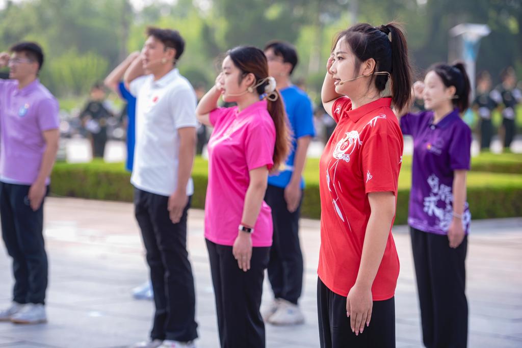 “升國旗,奏唱國歌!”升旗手振臂一揮,五星紅旗在雄壯激昂的《義勇軍進行曲》中冉冉升起。全體師生肅然而立,向國旗行注目禮,齊聲高唱國歌。104載崢嶸歲月,熔鑄了中國共產黨堅如磐石的理想信念;104載砥礪前行,堅定了中華兒女邁向偉大復興的鏗鏘步伐。