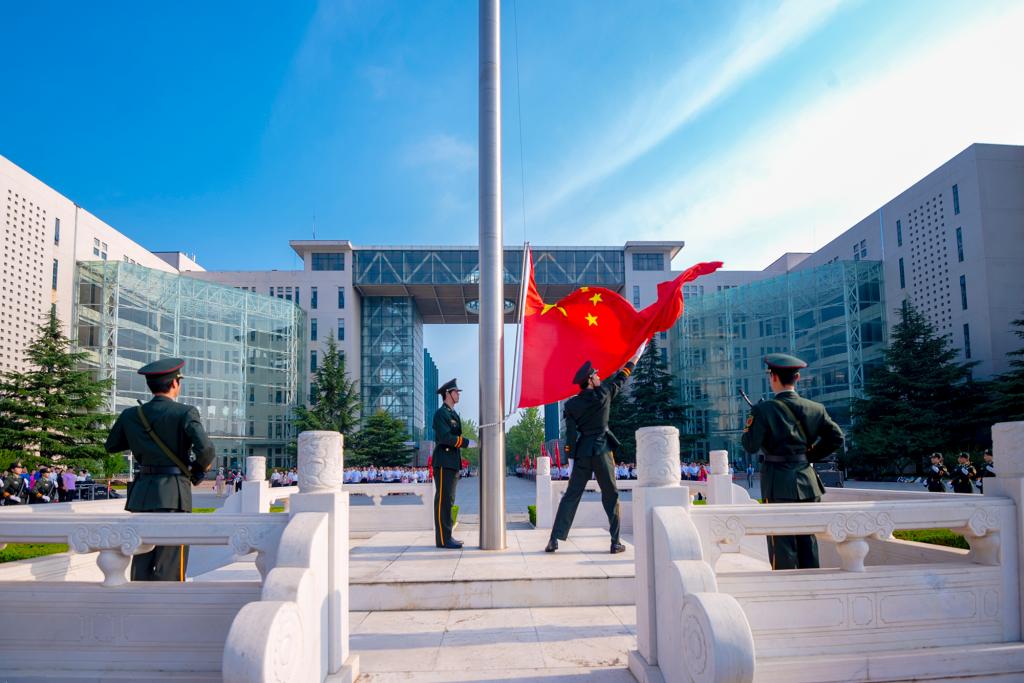 晨光熹微,清風送爽。伴隨著鐘樓悠揚而莊嚴的第七聲鐘響,煙臺大學國旗護衛隊隊員迎著朝陽,邁著鏗鏘有力的步伐,護衛著鮮艷的五星紅旗,正步走向升旗臺。