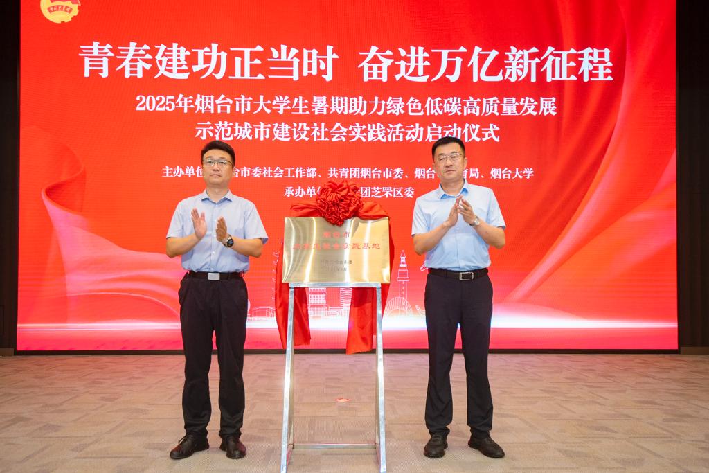 【本站訊】為深入貫徹習近平總書記致全國青聯十四屆全委會和全國學聯二十八大的賀信精神,引導廣大青年學生在大思政課中受教育、長才干、作貢獻,助力綠色低碳高質量發展示范城市建設,7月9日,由煙臺市委社會工作部、共青團煙臺市委、煙臺市教育局、煙臺大學主辦,共青團芝罘區委承辦的2025年煙臺市大學生暑期助力綠色低碳高質量發展示范城市建設社會實踐活動啟動儀式在芝罘區委黨校舉行。煙臺大學黨委常委、副校長姚昌,共青團煙臺市委書記張坤,芝罘區委常委、組織部部長遲義江,煙臺市教育局三級調研員李揚出席啟動儀式并為煙臺市大學生社會實踐基地揭牌。駐煙高校、市屬院校、縣(市、區)團干部代表,煙臺市社會實踐團隊師生代表等共計300余人參加。