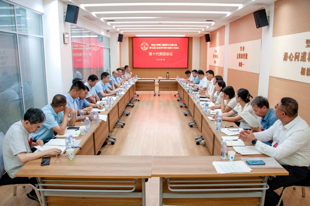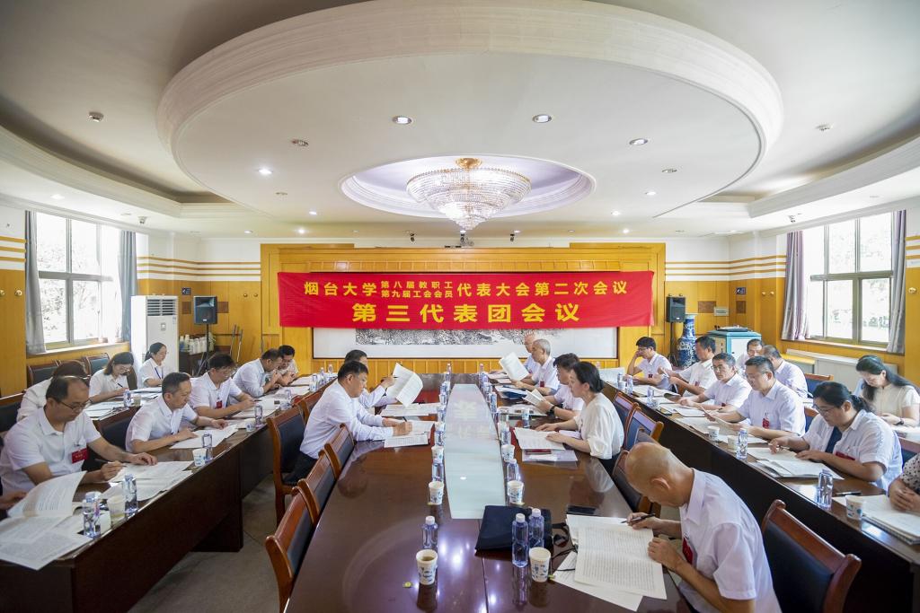 會議期間,與會代表分為10個代表團,討論了學校工作報告、工會工作報告、學校2024年度財務決算及2025年度財務預算工作報告、第八屆教代會第一次會議提案工作及第八屆教代會第二次會議提案征集情況報告、2024年度教職工福利費使用情況報告、2024年度工會經費使用情況審查報告、學校學術委員會2024年度工作報告、煙臺大學專業技術職務(崗位)評聘工作實施辦法等。