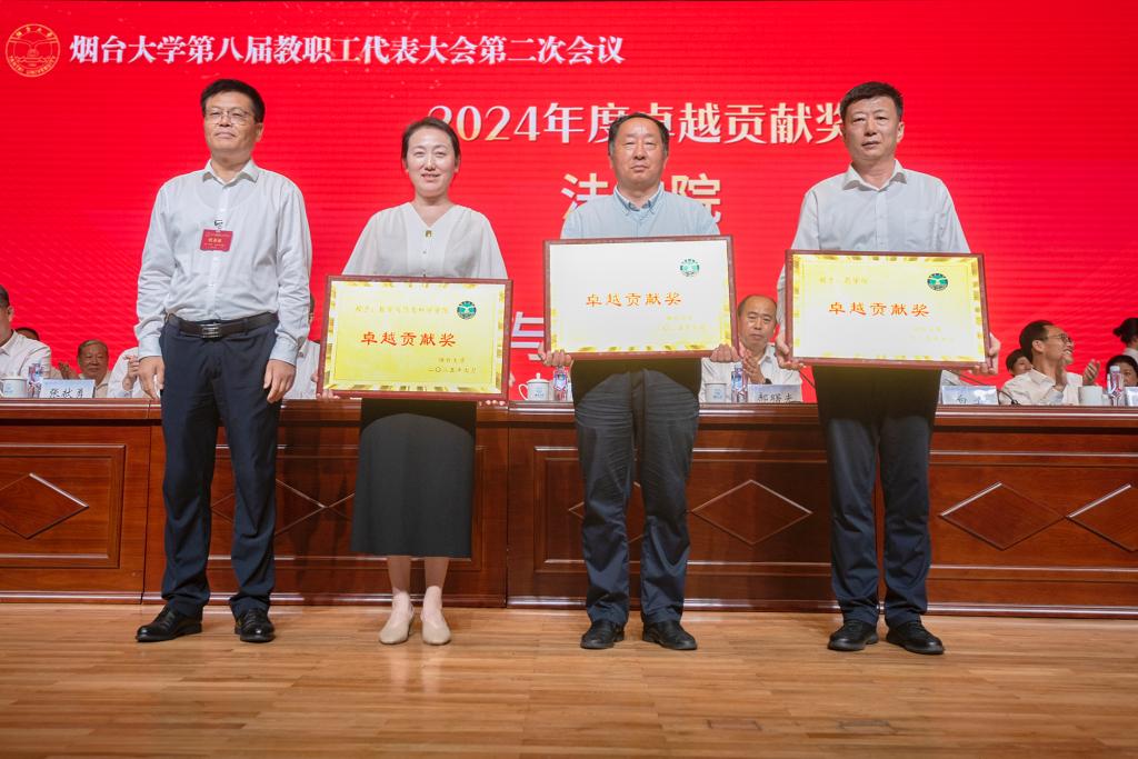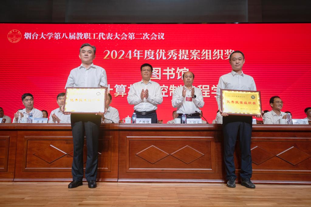 大會表彰了煙臺大學2024年度卓越貢獻獎獲獎集體(法學院、藥學院、數學與信息科學學院)、第八屆教代會第一次會議優秀提案和優秀提案組織、2024年度工會(婦委會)先進集體和個人。大會表決通過《煙臺大學專業技術職務(崗位)評聘工作實施辦法》和大會決議。
