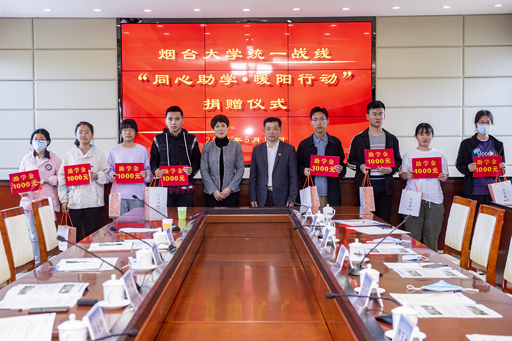 【本站訊】5月14日,煙臺大學統一戰線“同心助學·暖陽行動”捐贈儀式暨莆田市駐煙臺流動黨支部結對幫扶公益活動在育秀大樓316舉行。莆田市駐煙臺流動黨支部書記楊興漢一行7人,學校黨委統戰部、光電信息科學技術學院、黨委學工部負責人和相關工作人員、受助學生參加。儀式由光電信息科學技術學院黨總支書記丁峰主持。