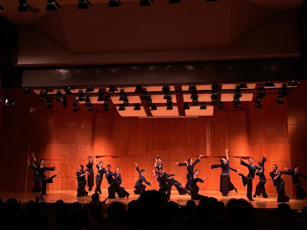 本次匯報演出通過“詩樂舞”三位一體的模式切入,采用“閱讀詩文—營造詩境—鑒賞音樂—舞蹈組合”的方法,循序漸進地引導學生進行舞蹈肢體實踐。演出現場,各個舞蹈組合用富有感情的肢體語言演繹古典詩文,觀眾在中國古典音樂和曼妙舞姿中,感受中華優秀傳統文化的獨特魅力。