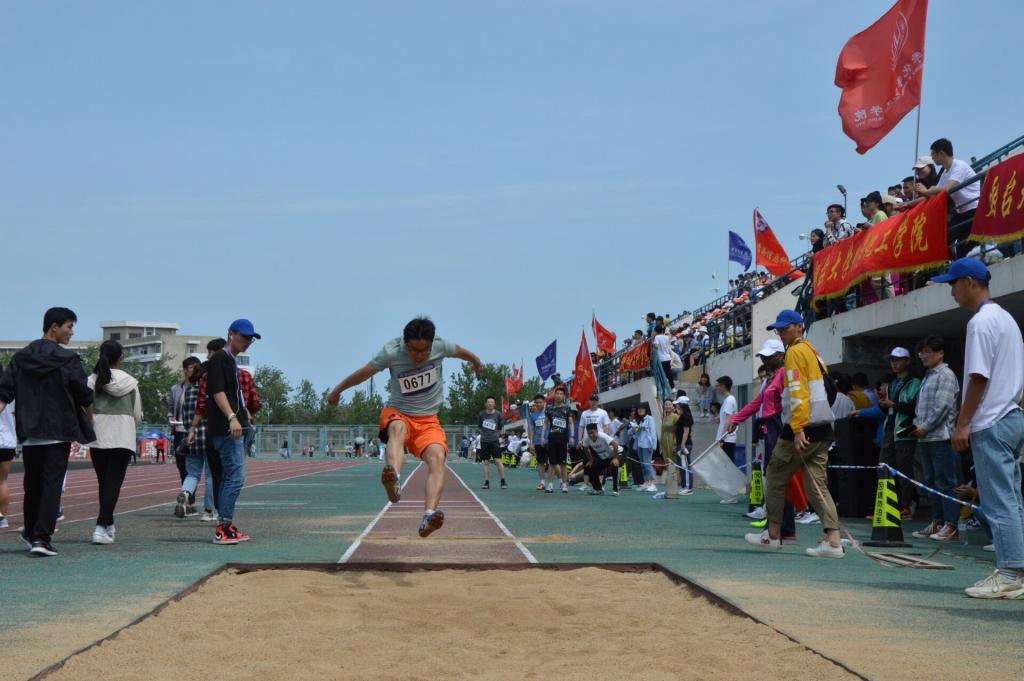 5月16日10時10分男子教職工跳遠決賽開始。參賽選手們個個摩拳擦掌,躍躍欲試。在最后一輪比賽中人文學院李光柱老師健步如飛,輕松一躍便取得了4.85米的好成績。而0677號選手孫建超也不甘示弱,表現突出贏得了大家的歡呼。然而,比賽卻并不是一帆風順的,有驚喜也有失落,不少選手因姿勢不對而導致跳遠的失利,但這并沒有使他們喪失對比賽的信心,反而使他們越挫越勇。每一次的跳躍都全身心地沉投入其中,拼盡全力地一躍沖向空中,劃出一道美麗的弧線。幾輪比賽過后,環境與材料工程學院孫建超老師最后以4.95米的優異成績獲得了第一名的優異成績。孫建超老師不僅在跳遠比賽中獲得冠軍,而且在男子教工甲組100米比賽中成績同樣優異,他表示:“我對自己今天的表現十分滿意,而且通過參加此次運動會認識了很多有趣的老師,我感受到了煙臺大學同學與老師的熱情,我在此還要特別感謝為我在看臺上加油的環境與材料工程學院的同學們。”在此次比賽中取得第三名的人文學院李光柱老師一直以積極熱情的狀態參加比賽,在比賽過程中一直面帶自信的微笑,他熱情地說道:“因為此次比賽是代表人文學院出戰,所以我為此次比賽拼盡了全力。我不僅在運動會前進行了自我訓練,而且購買了合身的運動裝備,所以這次比賽過程中多了幾分自信?!崩罟庵蠋熾m在學生時代很少參加運動項目,但他在此次比賽的表現展現了敢拼敢做的體育競技精神。